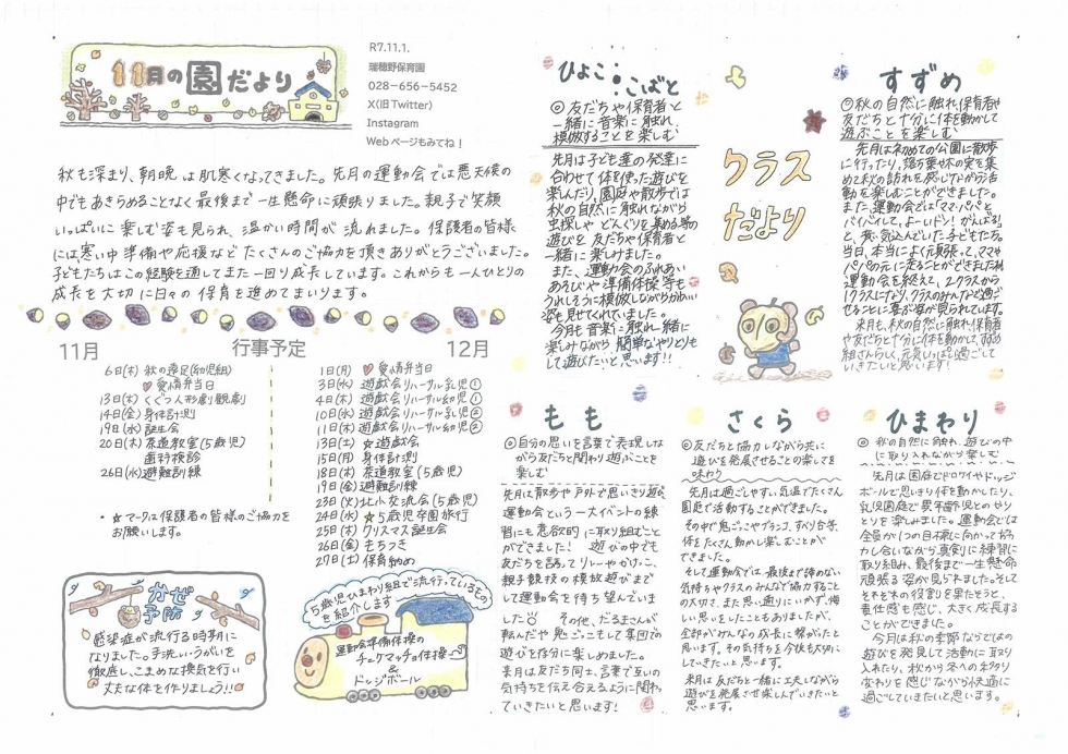 2025年11月瑞穂野保育園 園だより
